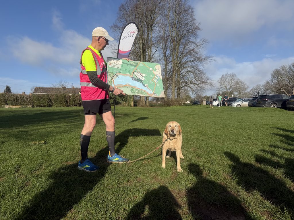 The star of the first time brief was Izzy, a retired guide dog (Sorry Nigel)! Nigel used a large map of the course to expertly advise us all of the route. I made a particular note to watch out for the ‘wibbly wobbly bridge’